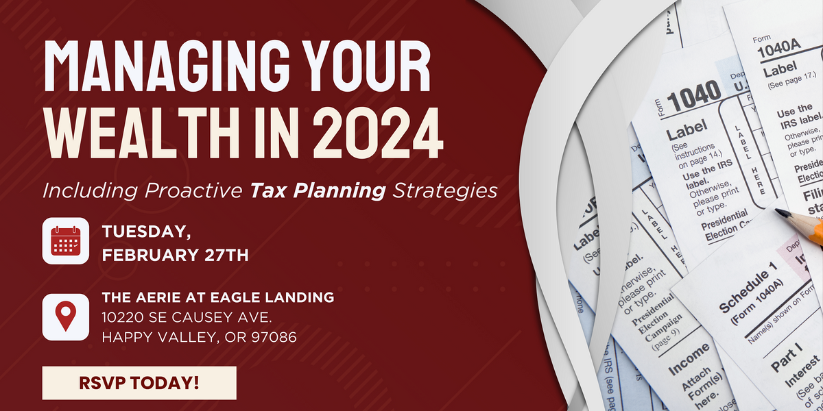 Please join us for this informative event as we discuss timely and practical wealth management strategies for 2024, including proactive tax planning strategies.
